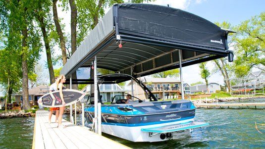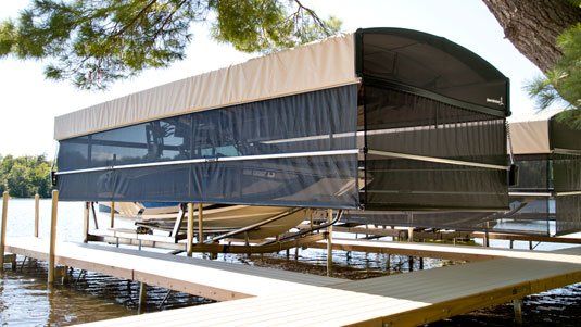 Protect your boat from the elements and upgrade the look of your shorefront with one of ShoreStation’s boat lift canvases. Whether you want a traditional style or a modern design, we have a durable boat lift canvas to meet your needs and protect your watercraft.